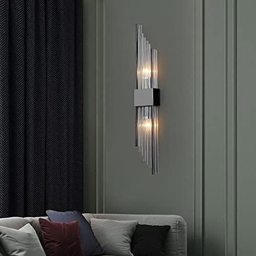 Ahuja International Modern Long Strip Glass Wall Light European Crystal Wall Mount Fixture Stainless Steel Finish Wall Lamp