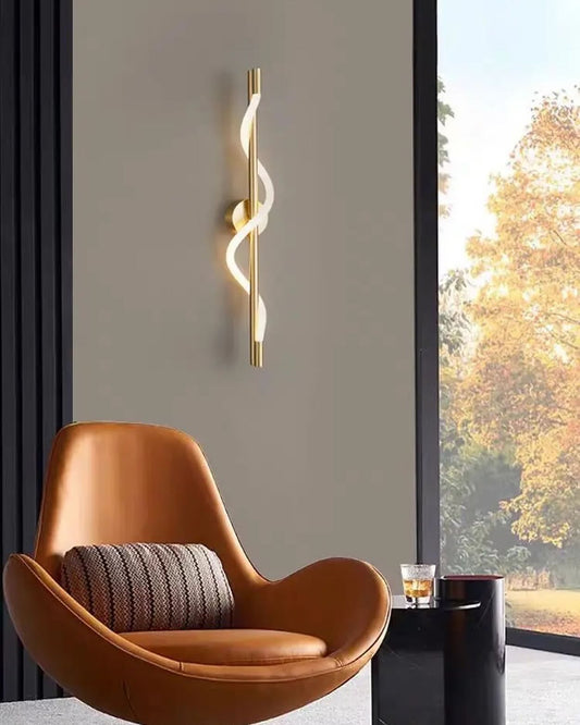 Ahuja International Modern Golden Body LED Long Twisted Acrylic Tube Wall Light for Bedroom Bedside Living Room Hallway - Warm White (600/800mm)