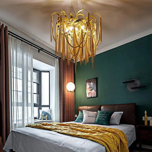 Ahuja International Modern Luxury Chandelier Light Chain Tassel Living Room Dining Room Chandelier Villa Lamps ( 600/800MM)