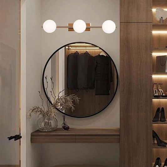 AHUJA INTERNATIONAL Modern Led Wall Sconce 3-Light Bathroom Vanity Light, Industrial Wall Bathroom Lighting Over Mirror, Milk White Glass Shade Bedside Wall Lamp