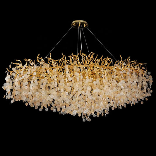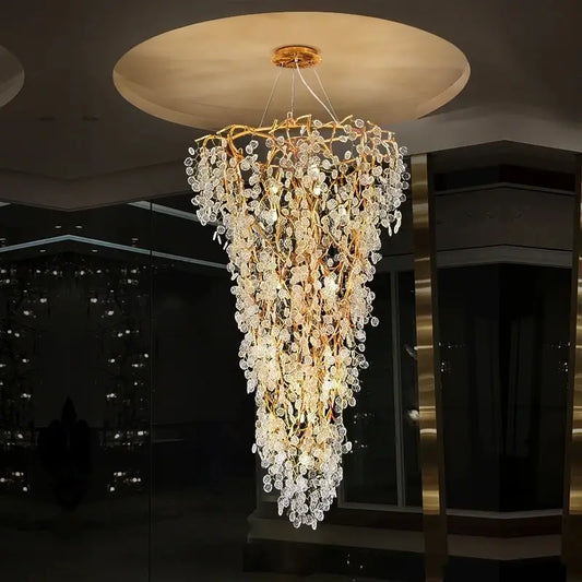 Ahuja International Modern The Metal LED Tree Chandelier Hanging Suspension Lamp Gold Crystal Chandelier Luxurious Chandeliers Lights Long Stairway Hall Home Indoor Lighting
