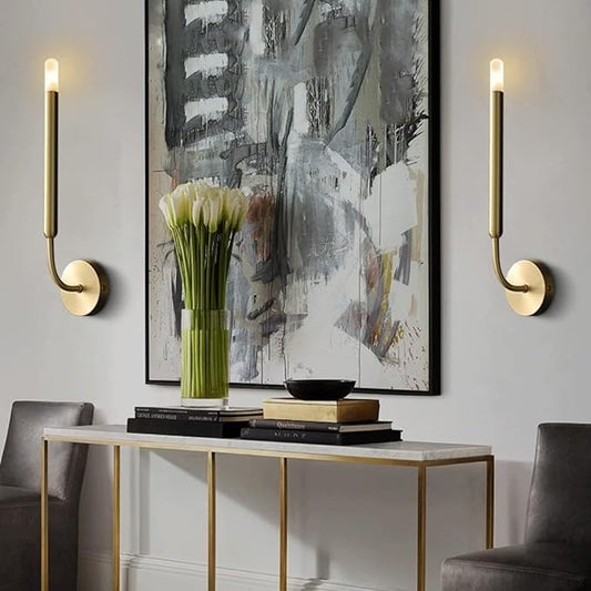 AHUJA INTERNATIONAL Wall Lamp Mid Century Simple Decoration Long Wall Lights Brass Bracket Single Head G4 Socket Rustic Wall-Mounted Sconce with Acrylic Shade for Indoor Cafe Office,Wall Lamps