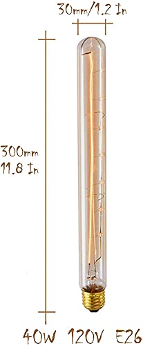 Ahuja International Vintage Edison Bulb T300, E26 E27,40W, Tubular Unique Designer,Decorative Light Bulb for Wall Sconces & Pendant Lantern Industrial Hanging,Fixture Pendant Lighting, Pack of 1