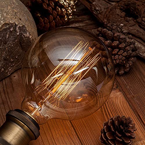 Ahuja International Vintage Antique Amber Glass, E26/27 T45 Dimmable 40W Edison Tungsten Light Bulbs for Home Light Fixtures Decorative 2 Packs