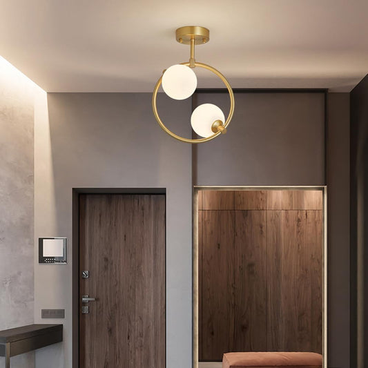 AHUJA INTERNATIONAL-Light Glass Ball Ceiling Light with Bulb Modern Brass Ceiling Light Fixture Nordic Entryway Hallway Close to Ceiling Lights Home Balcony Flush Mount Ceiling Light