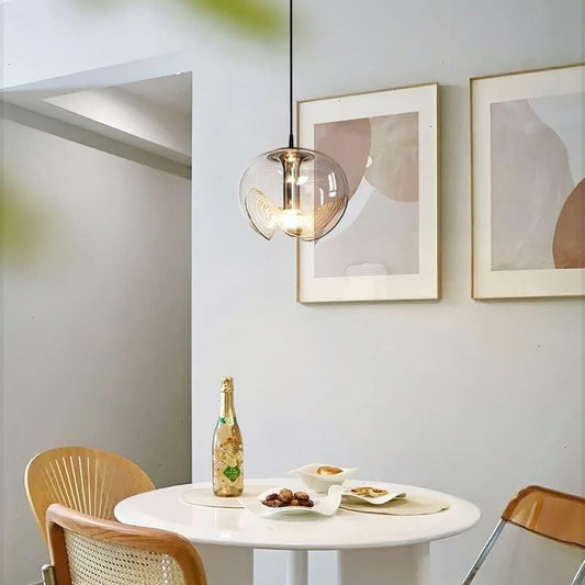 AHUJA INTERNATIONALPendant Lights, Modern Indoor Glass Pendant Light Creative Ceiling Light Simple Single Head Chandelier with Spherical Glass Shade E27/E26 Bulb Interface Hanging Light for Dinning Room Corridor Kitche