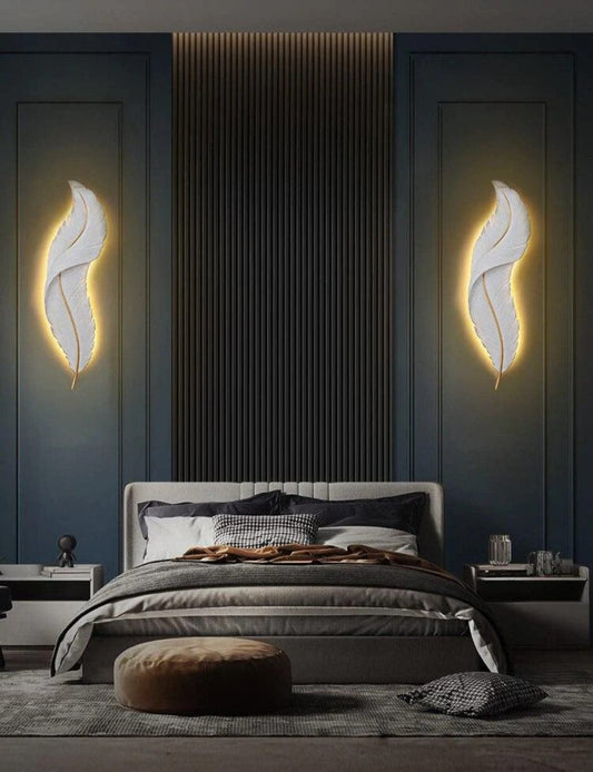 Ahuja International White LED Wall Light Resin Wall Light Modern Feather Shaped Wall Light Indoor Living Room Wall Lights for Bedroom Hallway Creative Home Decoration (900 MM)