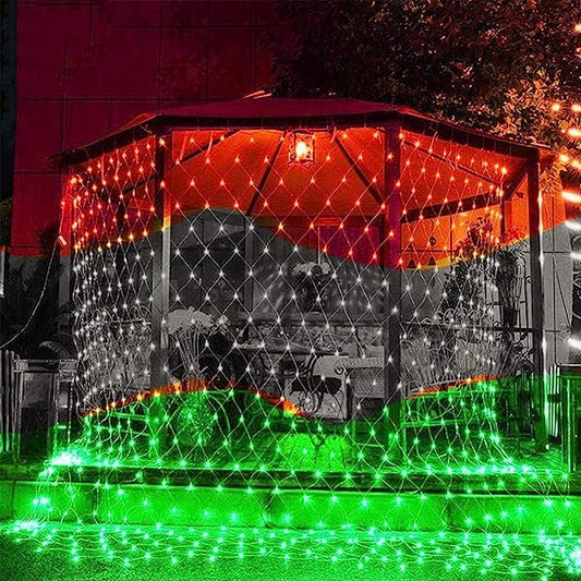 AHUJA INTERNATIONAL LED Tricolor Net Mesh Flag Fairy String Light Saffron White and Green-Plastic,Corded Electric,Rectangular 3x2M