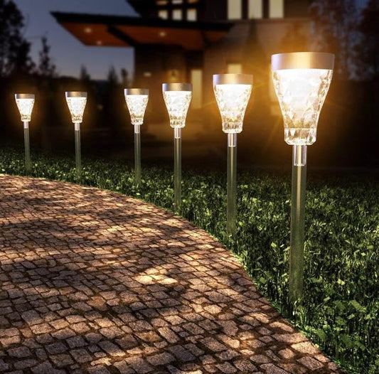 AHUJA INTERNATIONAL Solar Garden Stainless Steel Landscape Lighting Pathway Lights Outdoor, Solar Powered Wireless Waterproof Glass Stainless Steel Landscape Lighting for Lawn, Patio, Yard (Pack 2)